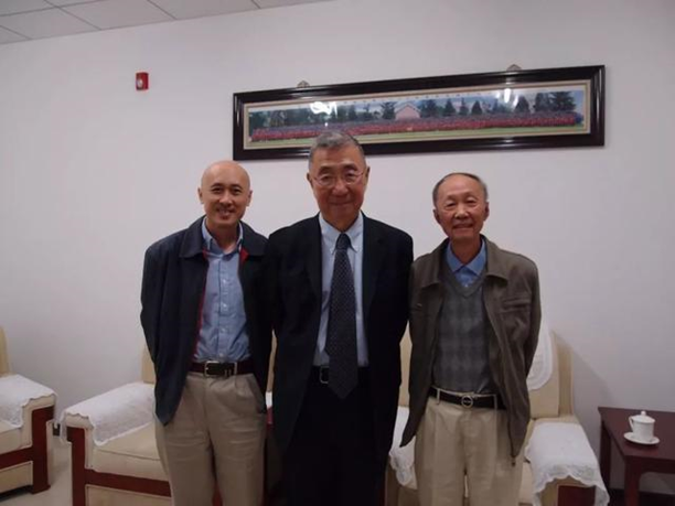 2014年丁肇中在中国科学院大学报告后与郑志鹏(右)、郑阳恒(左)合影