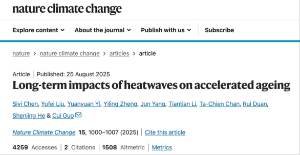 2025年,我们再次迎来了“史上最热夏天”。 据中国天气网报道,今年6月至8月,我国平均气温创历史新高,成为观测史上最热夏季[1]。在欧洲,连续不断的热浪已经导致数百人因高温死亡,加剧了野火灾害,供电系统也因空调使用激增而面临重压,导致德国、法国等国的电价飙升至正常水平的2-3倍[2]。 高温带来的危害不仅限于眼前的中暑和电力负荷。过往研究表明,热暴露会显著增加心血管疾病发病率和死亡率,尤其在老年人、女性、热带地区及中低收入国家人群中风险更高[3]。今年2月,南加州大学的研究也发现,美国56岁以上人群的短期、中期和长期高温暴露均与生物学衰老加速显著相关[4]。 在此背景下,《自然-气候变化》的新研究揭示了热浪的另一隐形威胁——加速衰老。 今年8月,一份发表在《自然-气候变化》(Nature Climate Change)上的研究揭示了高温的另一危害——长期暴露在热浪中将加速衰老进程,其作用程度与长期吸烟或饮酒相当[5]。 来自香港大学、广州医科大学等多所机构的研究团队,分析了24922名成年人在2008-2022年间的33701次观测数据,证实热浪对衰老进程的加速作用——受试者暴露的温度每升高1.3℃[6],生物年龄加速0.023-0.031年(约8.39-11.31天)。 在接受《自然》采访时,本研究的通讯作者、香港大学环境流行病学家郭萃认为,“这个数字可能看起来不大,但随着时间和人口累积,会产生不容忽视的公共卫生影响[7]。” 研究团队将2008-2022年间24922名年龄在25-80岁的参与者纳入分析,平均年龄46.3岁。样本中男性略多于女性。 整体来看,参与者受教育程度较高(约七成有大学及以上学历),生活方式普遍健康(如较少吸烟饮酒,运动和蔬果摄入较为规律)。样本中非体力劳动者比例高达96.9%,城市居民占86%。值得一提的是,空调在这些家庭中几乎已成为“标配”,平均每户拥有约 2.4 台。 为了衡量热浪影响,研究者利用 ERA5-land 土地再分析数据集的每日气温,建立了不同的热浪指标,包括累计暴露量(CumE)、持续时间、发生频率和强度,用来刻画人们在日常生活中实际经历的高温暴露程度,并利用肝、肺、肾功能及血压和炎症等多项检查结果来计算参与者的生物学年龄。 研究结果发现,热浪中的累计暴露量与生物年龄加速呈正相关。在所有四种热浪定义下,累计暴露量的增加总体上会导致生物年龄加速0.023-0.031年(约8.39-11.31天)。值得注意的是,这一数值与研究中的其它内在风险因素——吸烟、饮酒、饮食、运动等因素的效应量基本相当。相较之下,热浪持续时间的影响最为稳定,对生物年龄加速的影响为0.022-0.027年(约8.03-9.855天)。此外,热浪频率的影响仅在一种定义中显著,热浪强度与生物年龄加速的关联则相对较弱。 与此同时,人群也展现出了热适应的特征。在2008-2022年间,热浪对衰老加速的影响逐渐减弱,年均下降约10%,这说明人群正在逐渐适应热浪带来的诸种影响。这可能与空调拥有量增加有关——同期每百户家庭空调拥有量年均增加3.47台。也就是说,空调的普及在某种程度上“缓冲”了热浪对衰老的推动作用。 与既往研究结论一致的是,体力劳动者、空调普及率较低地区以及农村人口等脆弱群体更易受到热浪对衰老进程的影响,这说明了社会经济差异在衰老进程中的重要作用。 在基于相对阈值、持续至少2天的热浪事件定义下,累计暴露量对体力劳动者的健康影响显著强于非体力劳动者,其对生物年龄加速的影响分别为0.09年(约32.85天)与0.03年(约10.95天)。在同一定义下,农村居民与空调拥有量较小地区的居民更易受到热浪累计暴露量的影响。 研究指出,即使人群的热适应能力有所提升,热浪导致的疾病负担仍然保持高位。在气候变化持续加剧、全球人口老龄化的背景下,这一问题尤其值得警惕。研究者们在文中表示,解析热浪与衰老的关联机制,将有助于阐述热浪对健康影响的潜在作用路径,并促进人口适应气候变化。 如上述结论所示,为应对高温热浪对公共卫生带来的威胁,需要重点加强对欠发达地区、弱势群体的资源投入,提高空调等制冷系统的普及率,降低极端高温天气对健康的负面影响。从更宏观的视角看,大规模排放的化石燃料企业也是热浪事件中的一环。 9月10日,一篇发表在《自然》(Nature)杂志上的研究表明,180家碳巨头(主要化石燃料和水泥生产商)的排放在不同程度上增加了2000–2023年记录的213起热浪的发生概率。如果没有人为导致的全球变暖,这些热浪事件中约四分之一都“几乎不可能”发生。[8] 不过,空调等制冷降温手段也存在“碳排放悖论”。空调制造、使用和耗电过程本身会产生碳排放。由此看来,个人应对高温的对策无法脱离全球视角的复杂性,任何局部的防护行动都不可避免牵涉到更广泛的环境与社会影响。 “热浪不是一个影响个体的因素,而是一个全球性问题。”郭萃在接受《自然》采访时表示。