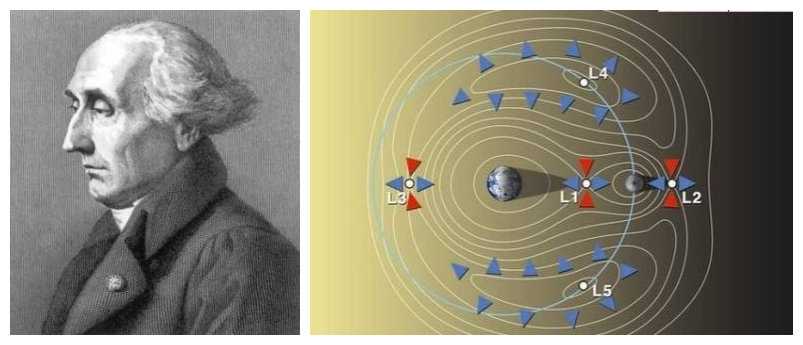 拉格朗日(1736-1813)及拉格朗日点示意图