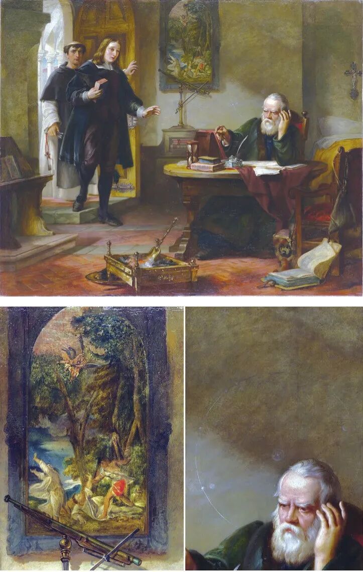 图11 哈特《弥尔顿访问宗教裁判所的囚徒伽利略》及其局部