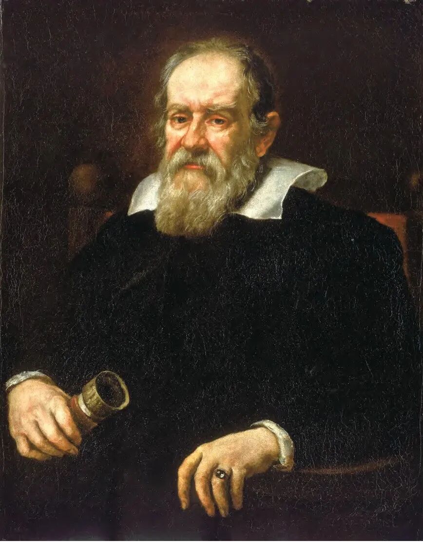 上图为意大利科学家伽利略(Galileo Galilei,1564—1642)的一幅油画肖像,是在佛罗伦萨担任宫廷画家的弗莱芒人苏斯特曼斯(Justes Sustermans,1597—1681)的著名作品之一,创作于1635年,现藏意大利佛罗伦萨乌菲兹美术馆(Le Gallerie Degli Uffizi)。1633年6月,伽利略因为《关于托勒密和哥白尼两大世界体系的对话》(Dialogo sopra i due massimi sistemi del mondo Tolemaico e Copernicano,本文简称《对话》)在前一年的出版被宗教裁判所判处终身监禁。在这幅画创作时,72岁的他正被监禁于自己位于佛罗伦萨城南阿切特里(Arcetiri)山坡上的别墅里。