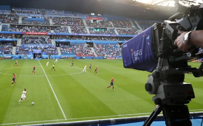 2019年女足世界杯,电视摄像机正在拍摄挪威与英格兰的比赛。来源:Catherine Ivill/FIFA/Getty