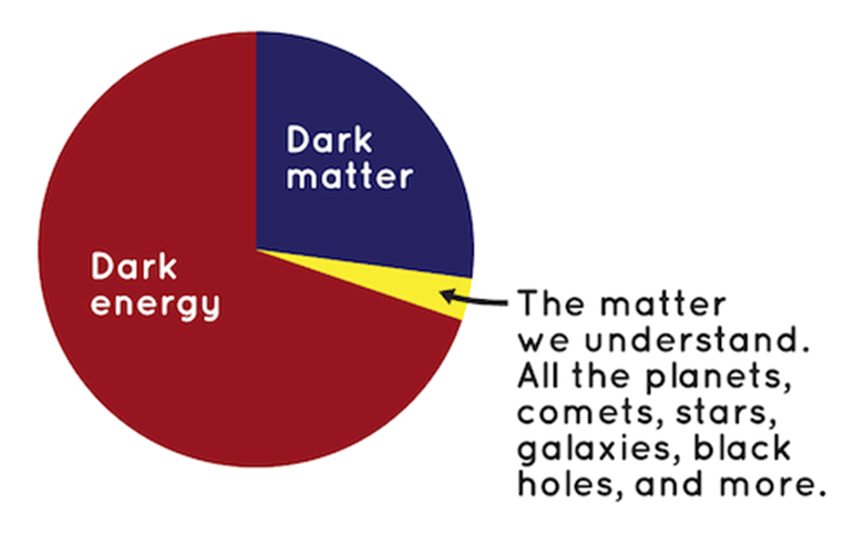 从那时起,关于暗物质存在的证据变得越来越强(如引力透镜效应、子弹星系团等,有些证据不是修改万有引力定律所能解释的,不再赘述),它在宇宙中所占比例被测量得越来越精确,是我们熟悉的普通物质的5倍之多。说我们的物质“普通”并不合适,因为它们在宇宙中其实相当罕见。