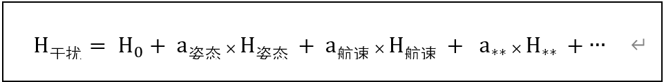 如何消除这些磁干扰?以前就靠在这三组感应线圈上加相应的电流来“磁补偿”。如何调整它的补偿量,这是一个非常困难的工作。现在要同时调整三个探头,几乎不可能完成。现在我们建议干脆不用线圈,而设计一个数学补偿模型(公式),用计算的方法补偿,以产生干扰的各因子H姿态,H航速,H**线性组合成H干扰。