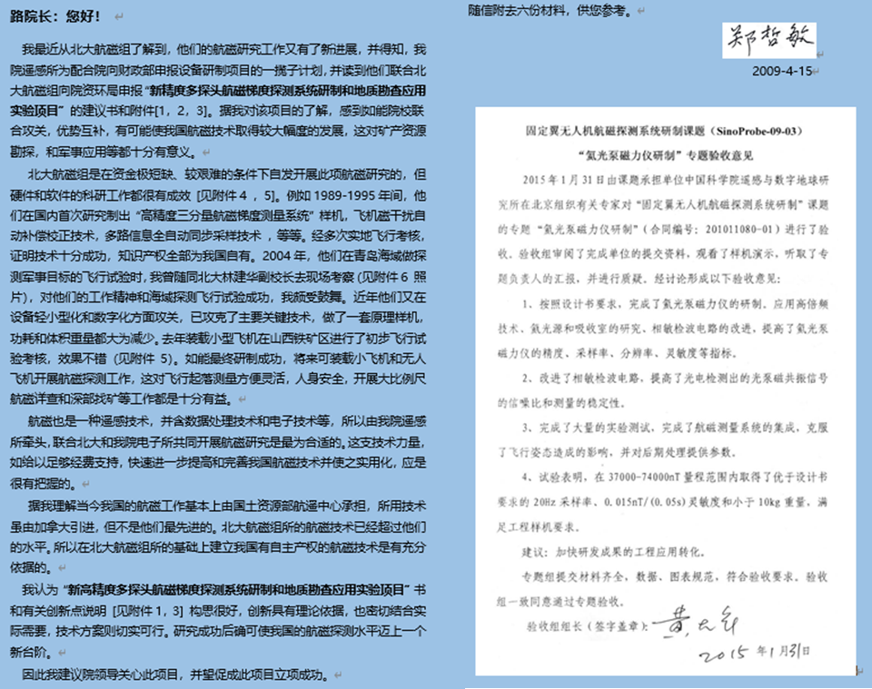 面对国际公认难题“航磁干扰补偿”,二人颠覆传统的线圈物理补偿思路,首创多探头差分式数学补偿模型( H干扰=∑ai×Hi ),通过“飞八字”采集数据拟合系数,成功消除飞机姿态、涡流等干扰,精度超越同期加拿大技术。
