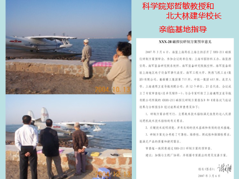 2004年,我们专为某用户作飞行实测。经过验收,我们研制的航次探测系统合格,并被立项采用。结果到了签订合同时,北大意外出局了,这项技术的应用也只能作罢。因为用户方并未了解掌握我们的技术,只好另行设法找别的产品替代(据说是进口国外产品)。