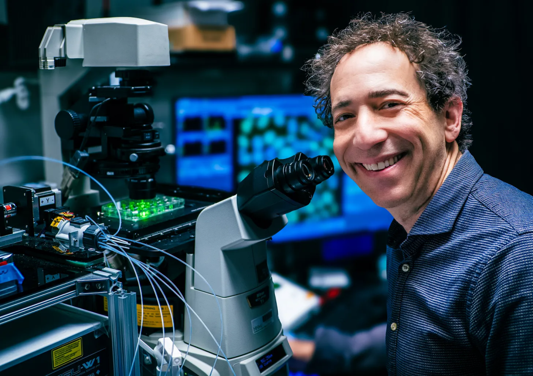Michael Elowitz在2000年发表的一项研究,成为合成生物学领域的开端工作之一。他现在是加州理工学院生物系、生物工程系及应用物理系教授。图片来源:Yitong Ma/David Jacobson。2000年1月,刚刚从普林斯顿大学博士毕业的Michael B. Elowitz和导师Stanislas Leibler在《自然》杂志报告,他们设计出首个基因表达振荡器,利用3个基因模块彼此间的抑制作用,实现下游基因表达信号的规律振荡,就像振荡电路输出的规则波形。这一工作成为合成生物学这一新领域的关键成果之一。