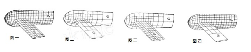 若按图一的面元分布计算气动力,块数超过计算机内存容量;现按图二重新分布面元。要求机身机翼接近、相互干扰大的区域面元块分布密度加大,远处密度较小,使总块数在计算机内存容许范围之内,进行气动计算。保留机身所得面源强度分布(即保留机身对机翼的影响源)而对机翼细分(如图三)重新计算机翼气动力,得所需结果;就按这一方法,我们在1976年算得带四个发动机舱的“运八”全机气动力。这是国内第一份以真实飞机为对象的全机气动力计算。由此计算的机翼气动力分布与实测核对得到肯定。