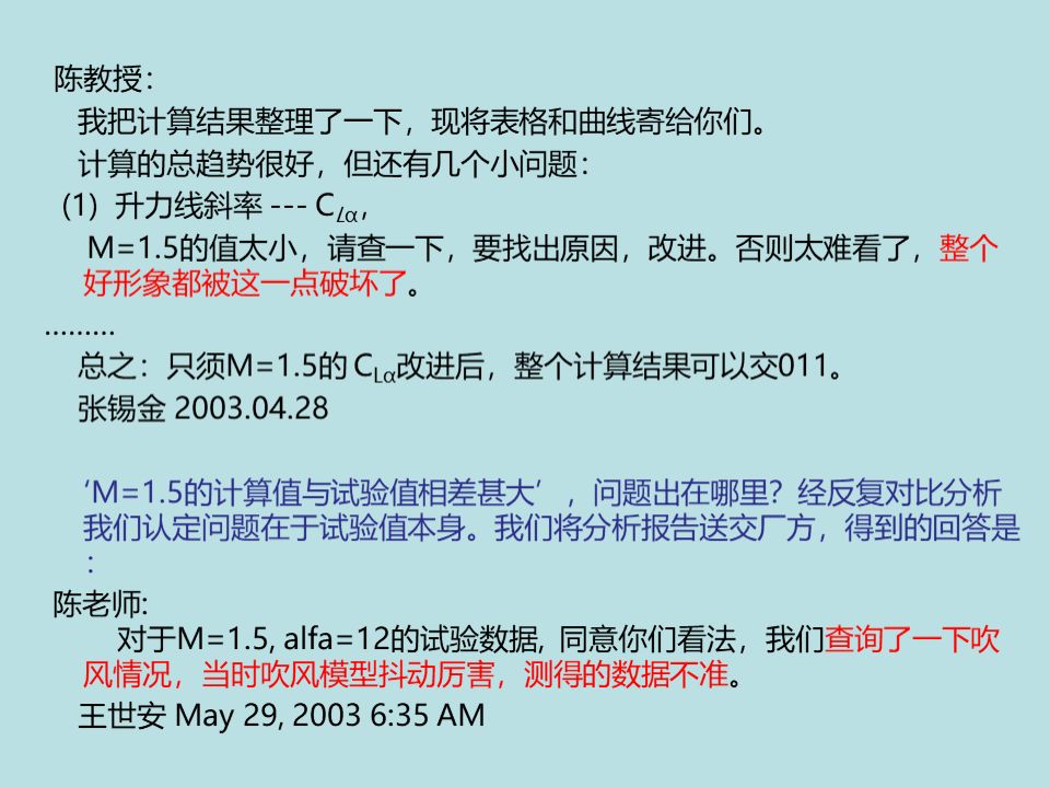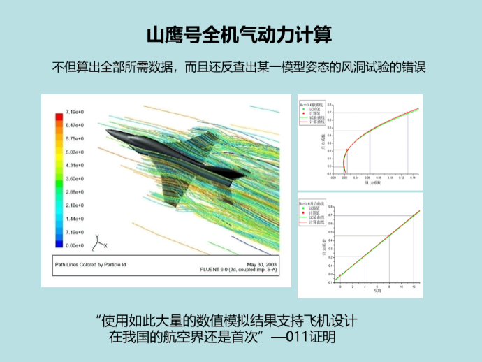 这是我们第一次为国内独立设计飞机作气动力计算服务。因为直接面向军工产品,我们组织三个计算组分头进行,做到结果一致后,再邀请603所气动计算负责人张锡金教授亲自审核。