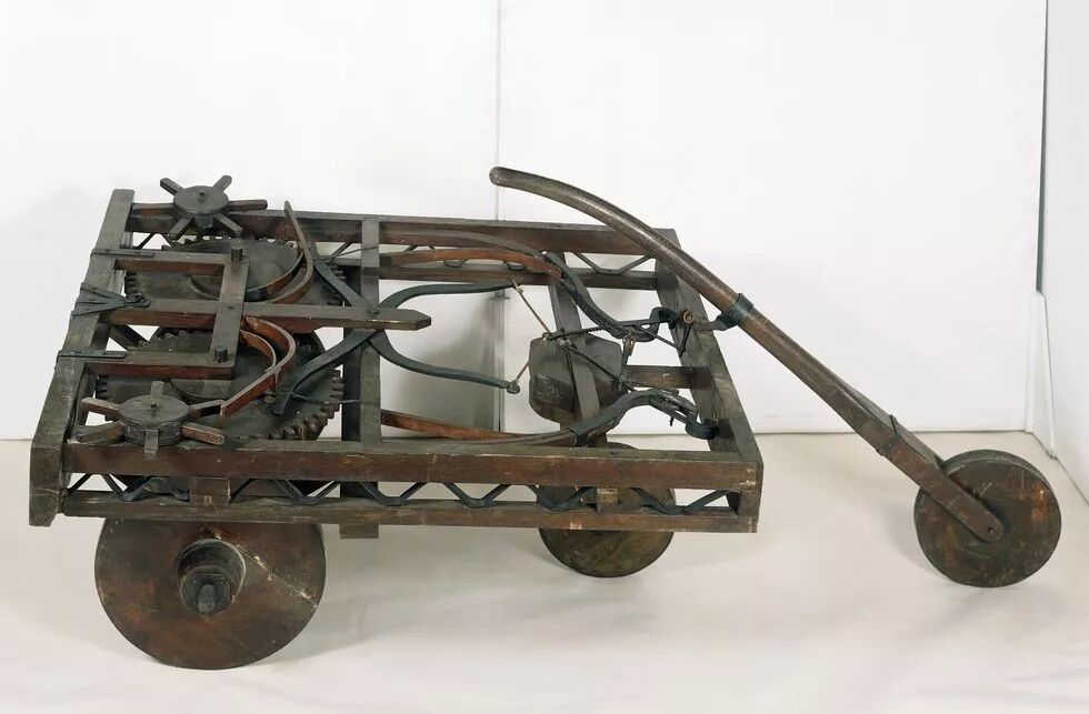 达芬奇完成了自推车的手绘稿,这一设计在2004年被佛罗伦萨科学史博物馆及研究所的馆长保罗•加卢齐(Paolo Galluzzi)和一支研究团队变成现实。