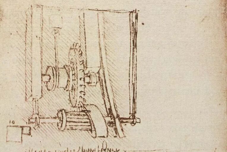 达芬奇被誉为第一个深入研究齿轮机制的人。他绘制了齿轮系统设计图,甚至创作了一幅飞行器起落架的草图。
