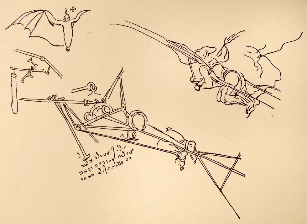 按达芬奇的扑翼机的设计方案,它的运作机制类似于鸟的解剖学结构,但我们不知道达芬奇有没有测试过他的概念。