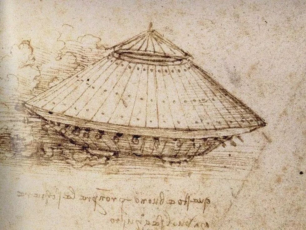 达芬奇构思了一种能够朝着所有方向移动、装载各种武器的概念车辆。尽管它看起来更像飞碟而不是坦克。