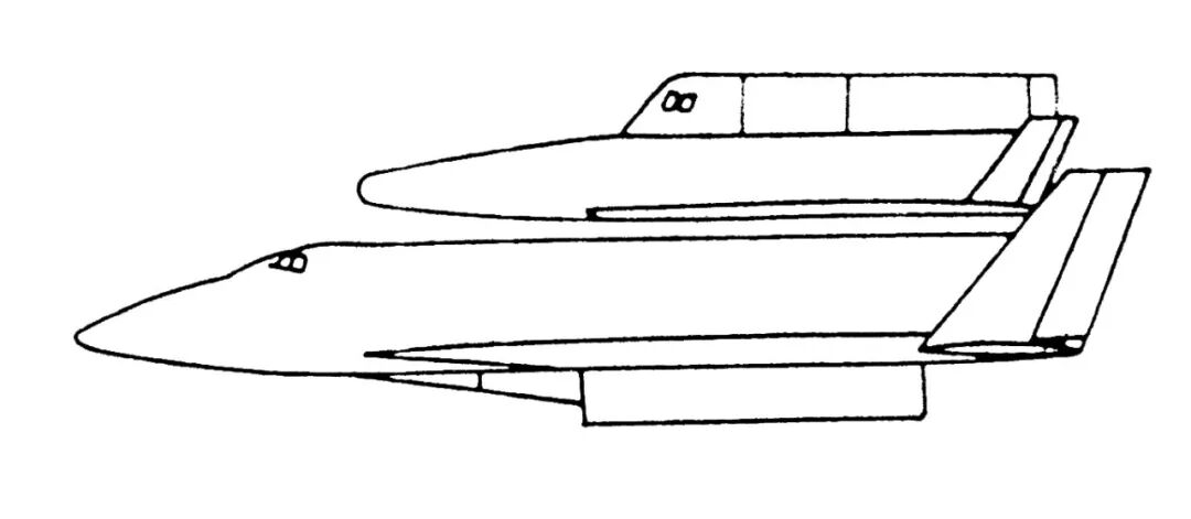 ※三是航天部北京11所提出的两级火箭飞机方案。这是一种一级和二级火箭飞机并联组合的方案。由于其第一级火箭飞机在完成助推任务后可以滑翔方式飞回地面,因此两级火箭飞机都能够重复使用。其研制周期预计需要25年。