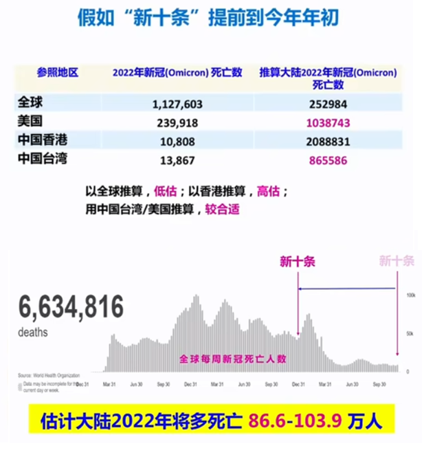 吴博士对假若2022年年初时推出“新十条”所带来的死亡的估算(图源:参考链接2)