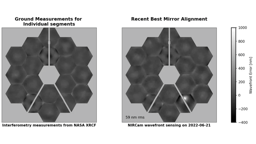 2022年5月22日至24日期间,一颗微陨石击中了韦布已经展开的18块镀金镜片中的一块C3反射镜,造成了无法弥补的可感伤害。2022年6月21日,官方公布了这一消息,近红外相机NIRCam右下角的受伤点位清晰可见。(PS:这图不算美,但你应该了解韦布可能面对的威胁。)