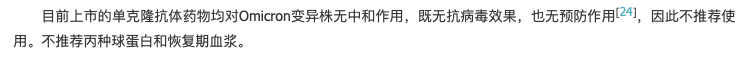 2023 年 1 月 4 日,《中华结核和呼吸杂志》在线发表《奥密克戎变异株所致重症新型冠状病毒感染临床救治专家推荐意见》,在抗病毒治疗方面明确提出,不推荐丙种球蛋白。