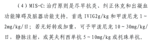 不过,在这版方案中在儿童特殊情况处理的 MIS-C 中则提到了 IVIG 的应用。