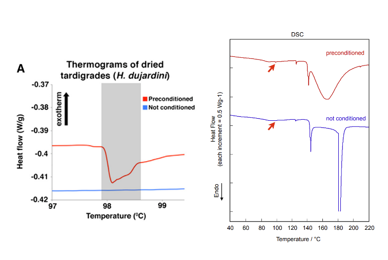 对于水熊虫玻璃化的的测试,日本科学家们未能重复出原文结果,因为没有看到明显的玻璃转化温度。他们向原作者要来了原始数据进行分析后,认为原文中报道的98摄氏度的玻璃转化温度是读数曲线中微不足道的一个小噪音导致的,并不可靠。