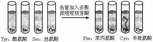 美国生物学家尼伦伯格首当其冲。1961年他用人工合成的RNA模板,进行无细胞蛋白质合成,以破译人们已经设想的遗传密码。他合成了一种只含尿嘧啶的多聚核苷酸,以它为模板合成蛋白质,结果产生了一种只有苯丙氨酸组成的蛋白质。这表明UUU就是苯丙氨酸的密码。这一成功非常令人振奋,许多生物学家开始投入到破译遗传密码的工作,到1967年,64个遗传密码全部得到破译。