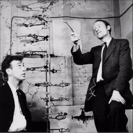 当时,威尔金斯与卡文迪许实验室的一位研究生克里克有着非常密切的关系。克里克因为第二次世界大战耽误了学业,战后因为受到薛定谔著作的影响转向生物学的学习研究。当他开始从事生物大分子结晶学研究时已经33岁了。在科学事业上,以这样的年龄改行从事一个完全陌生的事业,显然没有足够的勇气和炽热的事业心,是决不敢冒此风险的。1951年10月,美国信息学派的年轻的生物学家沃森来到了剑桥大学的卡文迪许实验室,正好与克里克在同一办公室工作。这实在是一种历史的巧合。由于学术思想上共同受到薛定谔的影响,都对遗传的本质问题有浓厚的兴趣,所以他们一见如故。从此开始了遗传学史上最富于成效、最激动人心的合作。