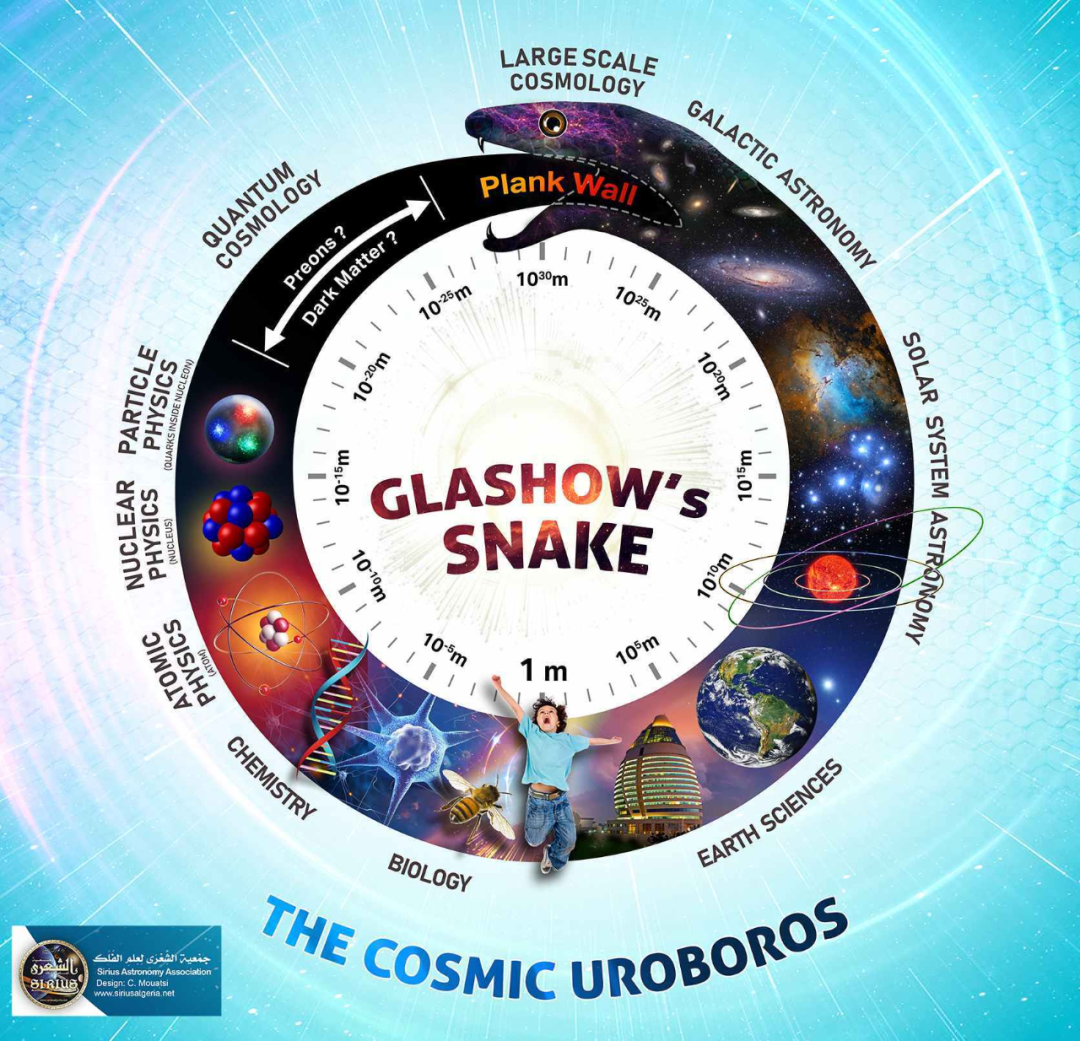 因此,宇宙学的研究,既是在满足人类好奇心的极限,也是在挑战人类想象力的极限。长久以来,这门古老的学科一直驻足于哲学上的思辨,直到1915年爱因斯坦提出广义相对论开始,宇宙学才真正成为一门系统、严谨的科学。随后的大爆炸理论更是将最宏大的宇宙与最微小的微观粒子紧密地联系在了一起,让物理学上的“极大”与“极小”以一种奇妙的方式相遇,仿佛“衔尾蛇”一样(图 1)。近30年来,得益于技术的发展,各式各样的宇宙学观测项目如雨后春笋般层出不穷,新进展数不胜数。千禧年后授予宇宙学相关研究的诺贝尔物理学奖就有5次(2006/2011/2017/2019/2020)。可以说,我们正处于宇宙学发展的“黄金时代”。