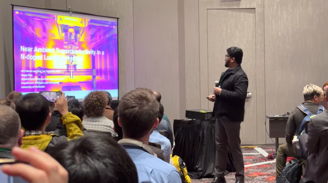 2023年3月,美国物理学会年会上,罗切斯特大学的兰加‧迪亚斯(Ranga P. Dias)团队宣布:他们在1GPa(约等于1万个大气压)的压强下,镥-氮-氢体系材料中实现了室温超导。
