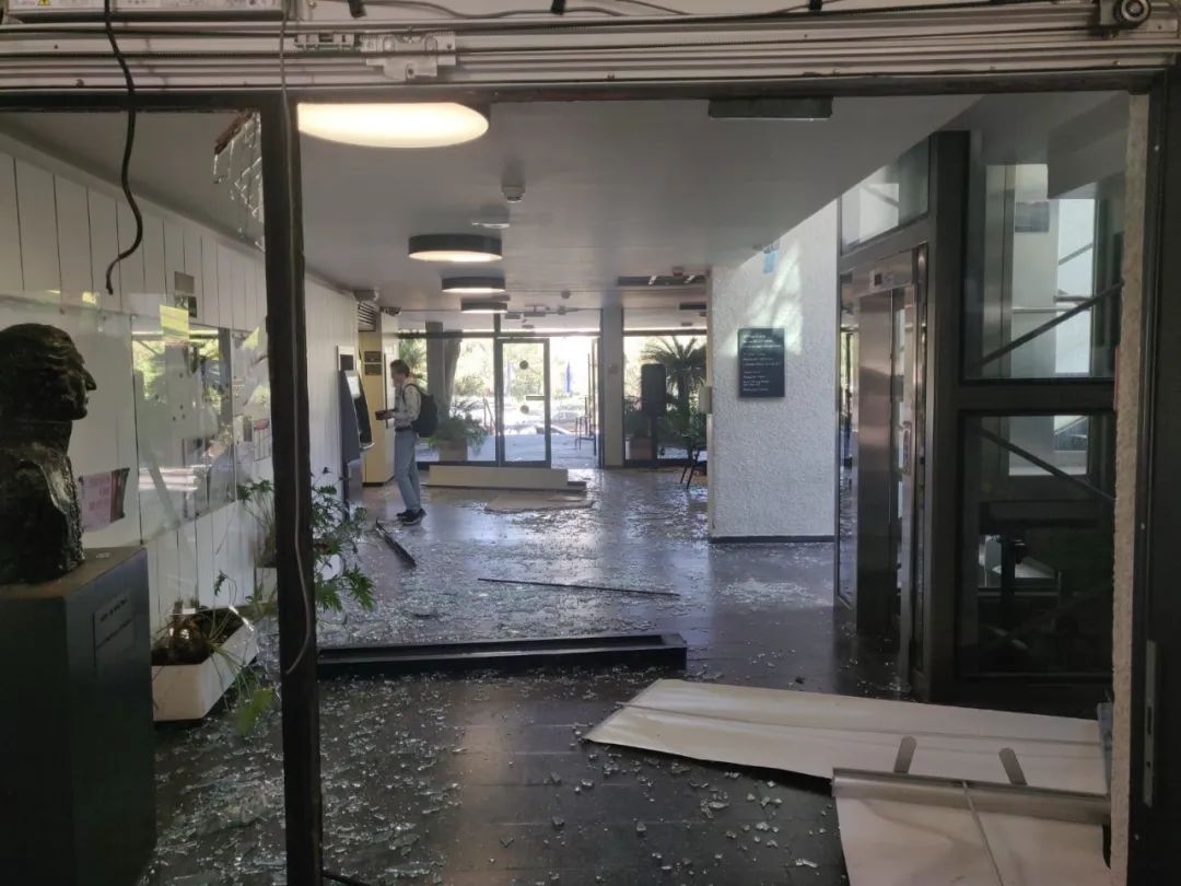 回到家,面对的便是一片狼藉:冰箱门被震开,高处的物品和盆栽摔落一地。万幸的是,白天已将窗户做了加固,玻璃没有碎,但多位朋友家中窗户尽碎。我的小猫惊恐地躲在床底深处,对最爱的零食也毫无反应,只是在角落里发抖。轻轻安抚完它并清理完地面后我刚想休息,工作群消息却疯狂弹出。俄罗斯同事发来消息:“我们单位魏茨曼科学研究所好像被导弹直接击中了,他家阳台上清楚看到多栋楼在起火!”