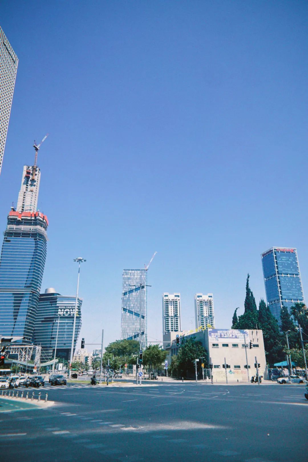 既然已经在特拉维夫,那就干脆去吃点好吃的吧。昨日盛传国防部大楼被炸,但街上多数店铺仍在营业。尝试了著名以色列来自加利利湖Buza冰淇淋的黑咖啡豆蔻味,浓郁醇厚的风味我超爱,也带来了些许慰藉。又吃了一碗拉面,拉面是典型的中东风味,不好吃,不过梅子酒味道还可以。吃饱喝足准备回家,步行去车站时,正好经过以色列国防部大楼。与想象中残破的景象截然不同,大楼完好无损,玻璃幕墙在阳光下反光。市中心高楼林立,除大型商场关闭,公共交通和上班人群如常,仿佛昨日的空袭只是幻象。我从包里掏出我的一次性胶片机,记录下这以后将会被载入史册的时光。回程公交车上,刷到伊朗官方发布的视频:其领导人正轻抚一枚巨大的核弹头,配以威胁性解说。一股寒意顿时升起,这可能是自两年前哈马斯街头无差别袭击事件后,令我最不安的时刻。脏弹?核武器攻击?无人知晓伊朗会否在绝望中动用终极手段。看着窗外,我的内心纷乱。