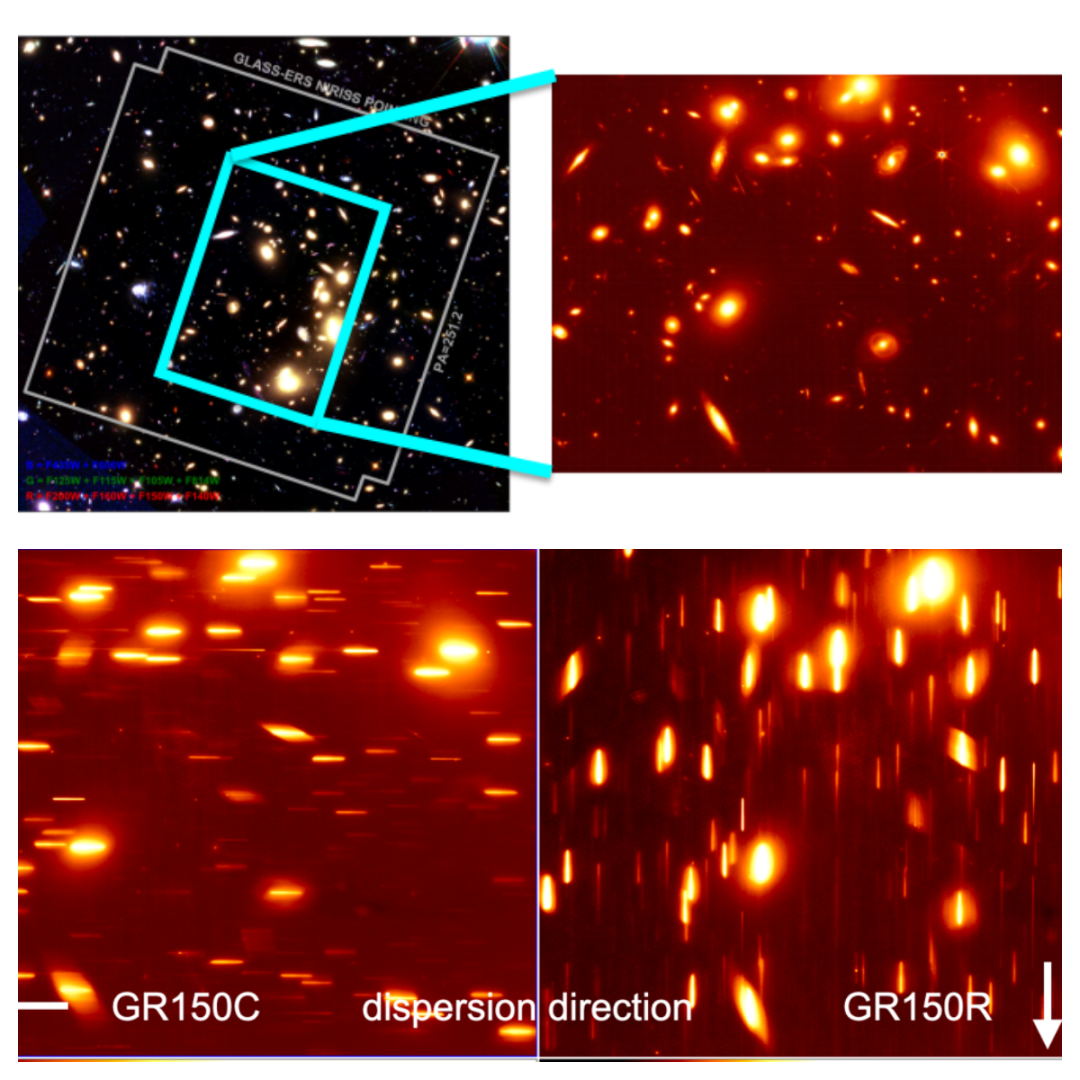 图片来源:http://glass.astro.ucla.edu/划时代的詹姆斯·韦布空间望远镜已经升空一年有余。作为现今最强大的近红外空间望远镜,韦布在出发之前就选取了13个先导项目,“韦布的酒杯 ”—— GLASS-JWST项目就是其中之一。本期赛先生天文,项目核心成员、中国科学院大学王鑫为我们分享GLASS-JWST的前世今生以及它所揭示的星系团背后的故事。詹姆斯·韦布空间望远镜(下文简称JWST)是联合了美国国家航空航天局(NASA)、欧洲航天局(ESA)和加拿大航天局(CSA)三家之力,造价超过100亿美元的空间旗舰项目。它于2021年12月25日在法属圭亚那发射升空,经过1个多月的航行,前往距离地球150万公里的拉格朗日L2点进行科学观测。依照NASA领衔的空间望远镜观测项目惯例,每年至少一次公开向全球天文学家征集观测项目。所提交的观测项目会经过层层淘汰,筛选出优胜项目并被给予观测时间。除了这种公开征集的General Observing一般观测项目,JWST前几个运行编排周期(Cycle)内,还存在Guaranteed Time Observation Programs(保证时间观测项目)和Early Release Science (ERS) Programs(早期释放科学项目),前者是奖励在JWST建造过程中做出杰出贡献的天文学家和相关团队,后者则是在2017年由NASA下辖的空间望远镜研究所(Space Telescope Science Institute,简称STScI)向全世界天文学界征集的先导项目。最终,13个项目脱颖而出,成为被空间望远镜研究所所长特批的先导项目,在JWST升空1年内观测完毕,其数据会即时公开,提供给全世界的天文学家进行科学分析。说白了,JWST这个量级的科学仪器,总要带着些精挑细选的前置任务,而不是飞到目的地才开始安排。无缝光谱透镜深场巡天(GLASS-JWST)先导项目就是这13个ERS项目的其中之一。笔者为该项目的核心成员,这个项目的前身是GLASS-HST项目。GLASS全称为The Grism Lens-Amplified Survey from Space,中文名称为无缝光谱透镜深场巡天,是哈勃空间望远镜(Hubble Space Telescope, HST) 第21个运行编排周期(Cycle-21)内执行的大型项目。该项目获得了140个轨道周期的观测,使用第三代宽视场照相机(Wide-Field Camera 3)上搭载的两个近红外无缝光谱仪(G102 与 G141)对10个星系团中心场进行了无缝光谱观测。由于哈勃空间望远镜在低地轨道(Low Earth Orbit)运行,每个轨道周期在轨运行时间大约为90分钟,其中科学曝光时间45分钟。这140个轨道周期的观测时间平均分配给10个星系团中心场,其中包括红移0.308的Abell 2744星系团场(见图1)。GLASS-HST项目产出了丰硕的科学成果,尤其在高效完善的无缝光谱分析软件与高红移星系光谱信息空间分辨分析等方面取得了划时代的进展。借由该项目营造的巨大优势,笔者所在的团队提出了使用JWST进一步进行深入无缝光谱与多目标狭缝光谱观测的透镜深场观测申请,这一申请被顺利批准成为GLASS-JWST项目。