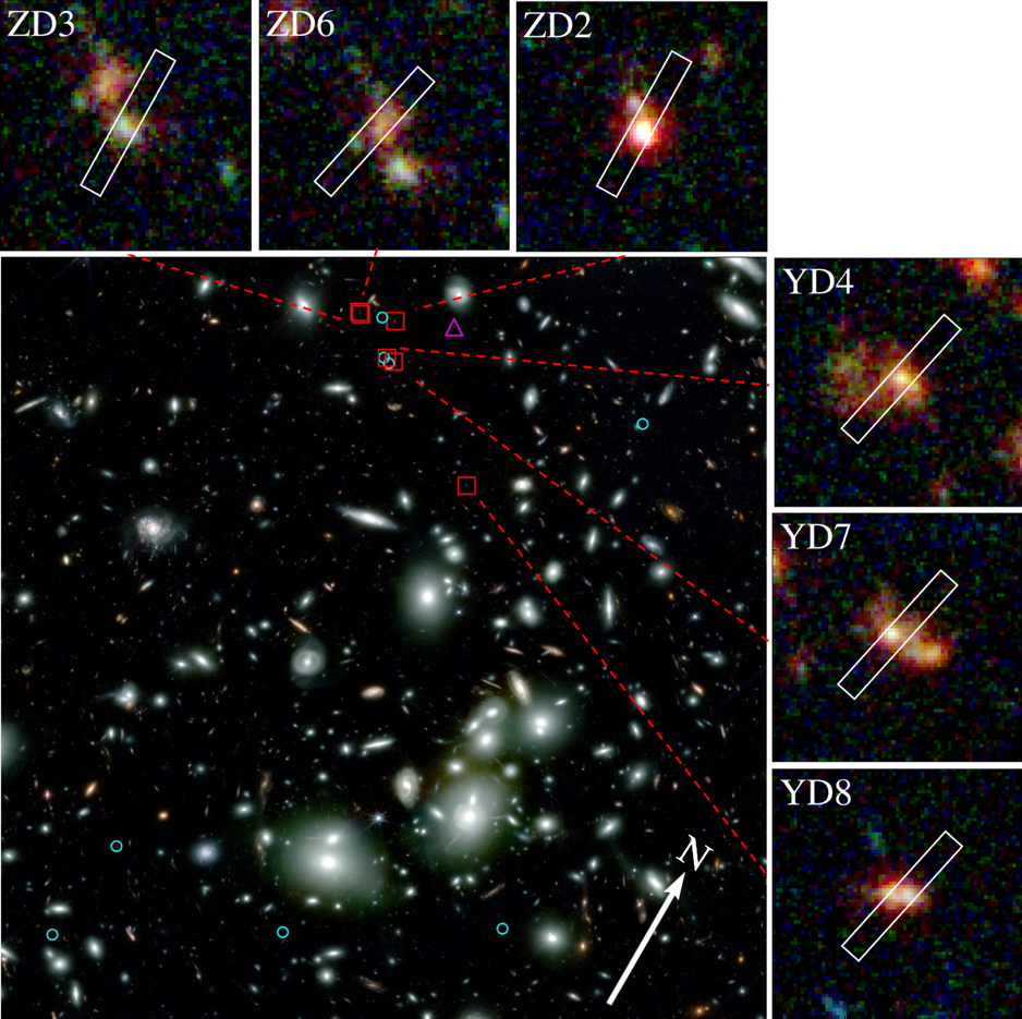 通过形态与光谱能量分布信息的分析表明,在大爆炸发生后的3、4亿年左右即形成了这两个十亿倍太阳质量的星系。这些极高红移(即年代非常久远的古老星系)的星系呈现令人惊叹的高亮度与致密的形态,与理论的预期和近邻星系的属性截然不同。